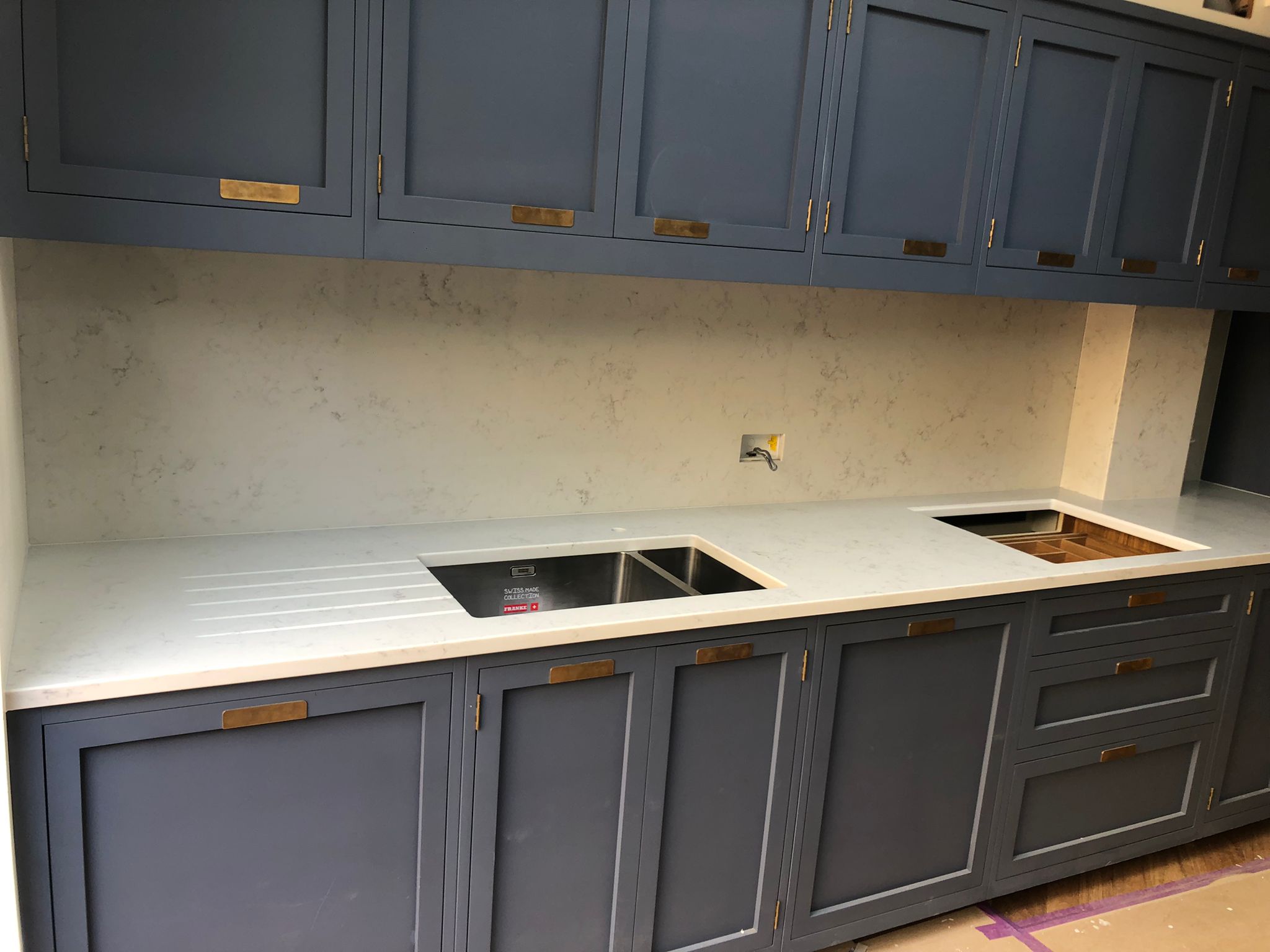 Our experienced team worked closely with the kitchen designer to ensure a seamless process from measurement to final installation. The finished worktops create a striking focal point in the kitchen while maintaining the durability required for daily use.